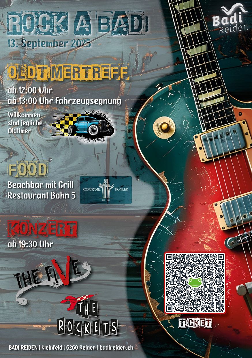 12:00 CH | ROCK A BADI Badifest ab 12:00 Oldtimertreff 13:00 Fahrzeugsegnung und ab 19:30 Livemusik mit The Five und The Rockets | Badi Kleinfeld 6260 nReiden |